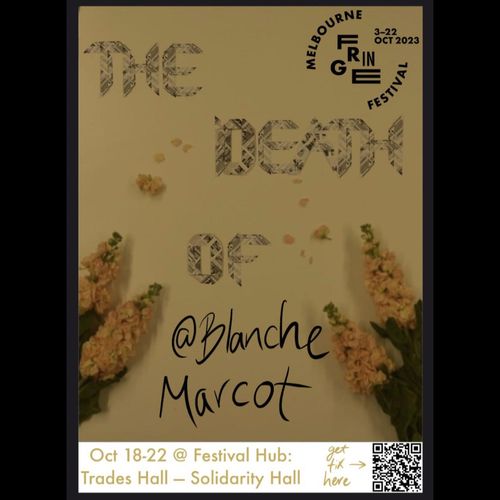 For those who missed it, The Death of @BlanchMarcot was a theatre production that masterfully skewered the often-absurd inner workings of the fictional, world-renowned theatre company, 'Blanch Marcot'. We're plunged into their world as they desperately try to manage the disastrous political and social fallout from their most recent, badly mishandled production, 'Super Fluous'.